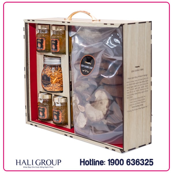 Thành phần: 1 hộp đông trùng hạ thảo khô 10g + 1 gói nấm linh chi 250g + 4 hũ yến (70ml/hũ) đông trùng hạ thảo
